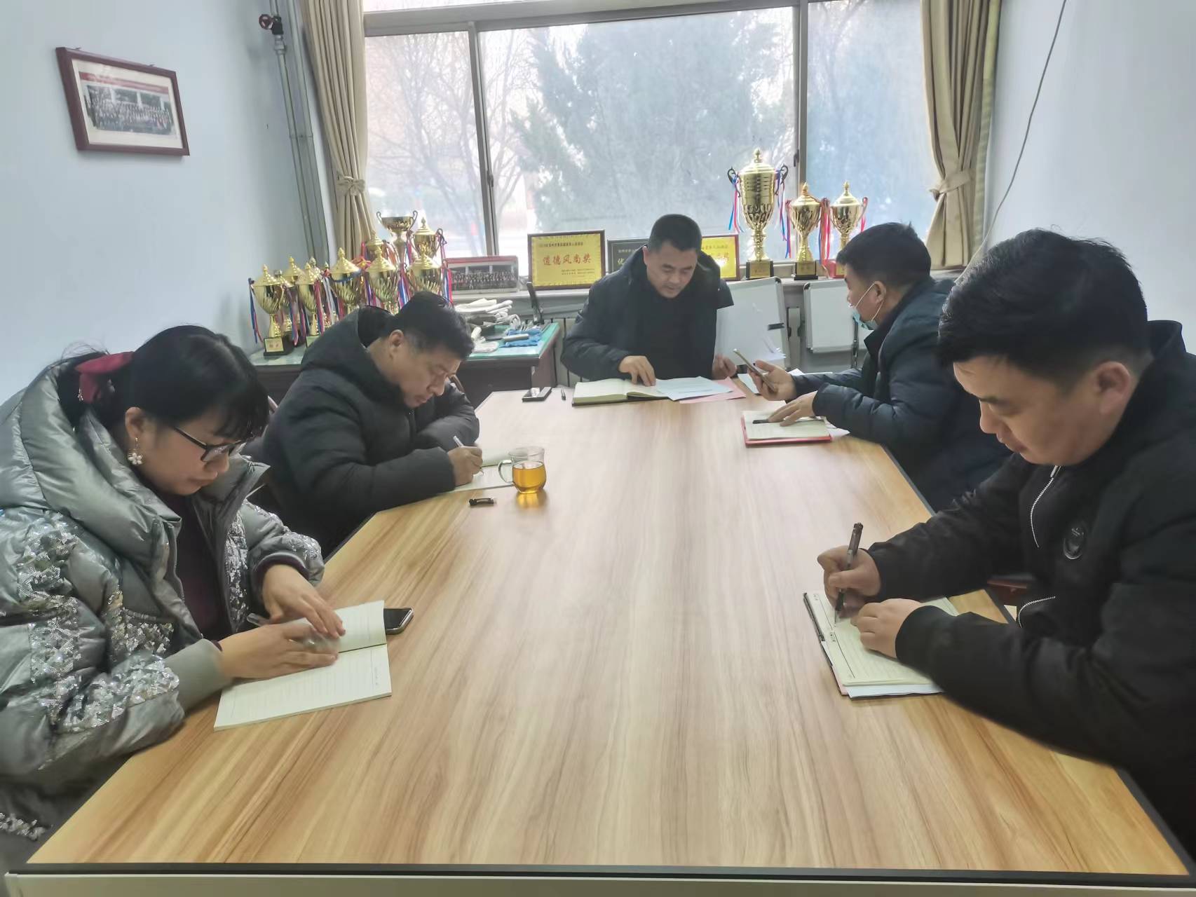 会议第一阶段进行了政治理论学习,由支部书记赵雪飞领学《印发<关于推进全省机关企事业单位离退休干部党组织与社区党组织融合共建工作的意见(试行)>的通知》、《关于转发<中共山东省委老干部局中共山东省委离退休干部工作委员会关于规范离退休干部党员“政治生日”活动的通知>的通知》和中共中央组织部下发通知要求在元旦春节期间开展走访慰问生活困难党员、老党员、老干部活动等相关文件制度。通过学习,支部党员们加深了对习近平新时代中国特色社会主义思想和党的二十大精神的理解领会,部门负责人还对近期业务工作进行了安排部署。
