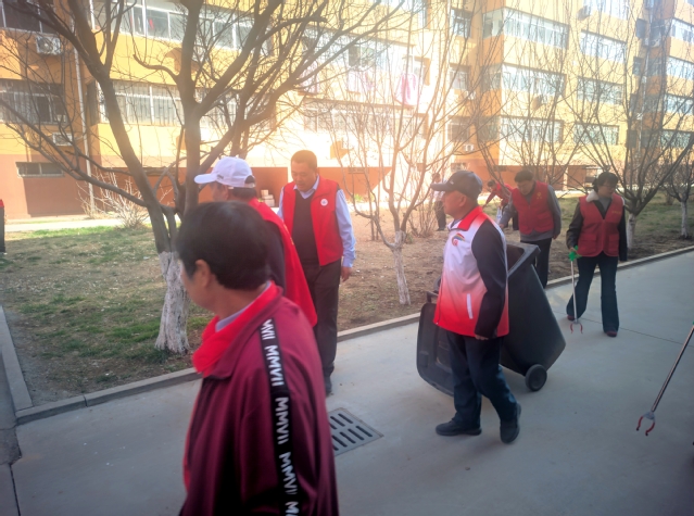仪式结束后,在qy球友会(离退休干部党委)负责同志的带领下,支部党员和小区群众志愿者一起迅速投入到小区安全卫生排查和清理中。老同志们虽已银发苍苍,但精神矍铄,干劲十足。他们身穿红色志愿马甲,手持夹子、垃圾袋等工具,分组深入小区的绿化带、公共活动区域和卫生死角开展清理,并仔细检查小区内各项安全隐患。